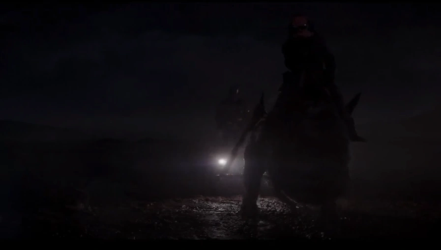Kuiil reitet im Regen bei Nacht durch die Wüste von Arvala-7.