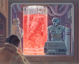 Luke wurde auf Hoth in einem Bacta-Tank behandelt. (von links nach rechts: Han, Leia, C-3PO)