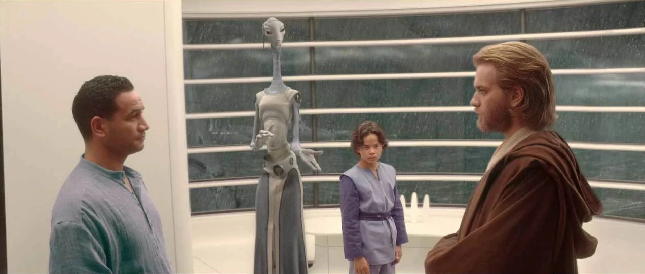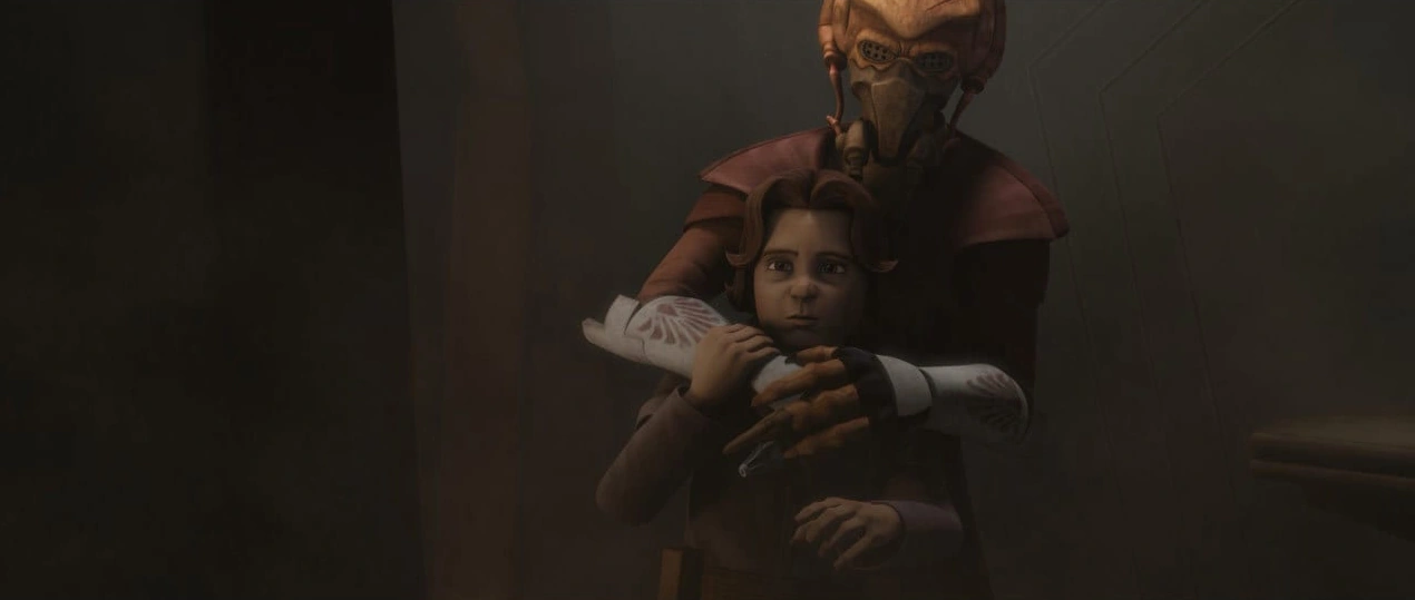 Boba Fett wird von Aurra Sing bei Plo Koon zurückgelassen.