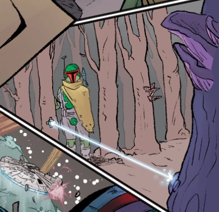an, allerdings begab sich Boba Fett unverzüglich zum Aushang, um sich das nächste Kopfgeldziel anzusehen.[36][Anm. 3]