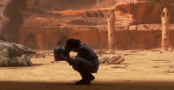 Boba betrauert Jangos Tod in der Arena von Geonosis