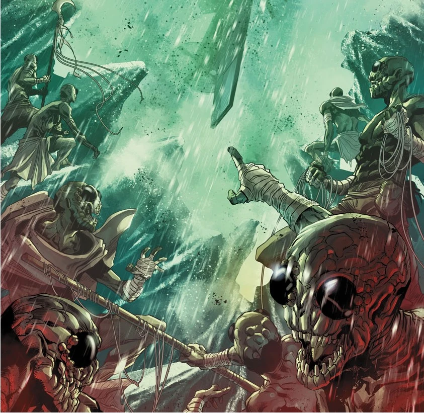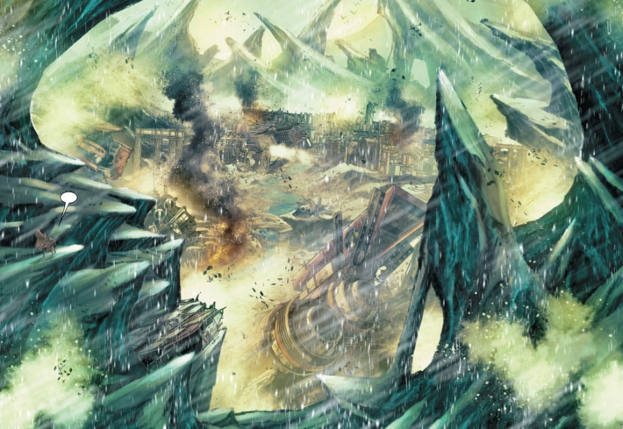 Weil die Städte in den Tälern, die größtenteils aus modernen Hochhäusern und vereinzelten, antiken Tempel bestehen, durch die Luftverpestung nicht mehr bewohnbar sind, suchten die Menschen Zuflucht in riesigen Gebirgshöhlen, wo sie sich neue, wenn auch schäbige Städte mit kleinen Häusern bauten und ihren Strom mit Windmühlen erzeugen.