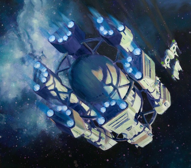 - „Ich gehe davon aus, dass er die Überreste der Vagaari-Flotte in Besitz nehmen will. Aber Sie haben recht. Sobald er dieses Schiff hier sieht, wird sich seine Priorität sicher ändern.“