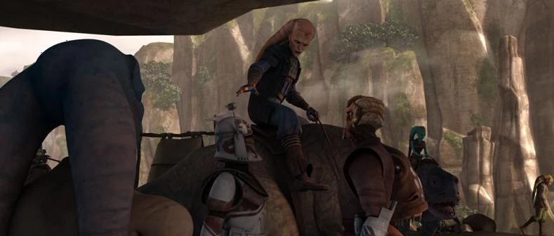 Als die Separatisten auf Ryloth einfielen, schlossen sich der Jedi-Meister Ima-Gun Di und die ihm unterstellten Klonkrieger dem Kampf an. Meister Di opferte sich dabei, um das Vorrücken der Separatisten zu verlangsam und das Durchdringen der Versorgungsgüter für die Twi'leks zu gewährleisten.[4]