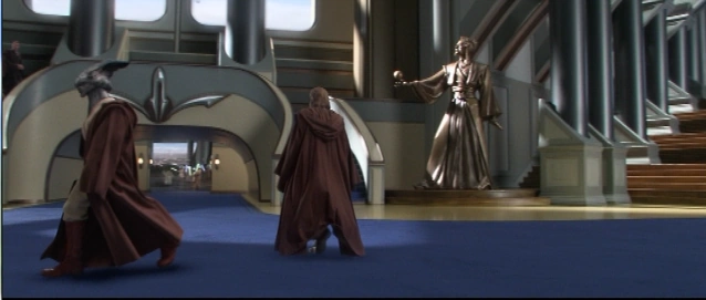 Coleman Trebor im Jedi-Tempel. Rechts neben ihm läuft Obi-Wan Kenobi.