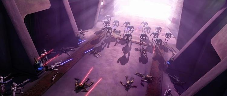 Nach einiger Zeit drangen weitere Droiden-Bataillone auf den Hof vor und wurden am AT-TE eingekesselt. Um die Droiden weiter bekämpfen zu können, nutzten die Waffen, die sie in den Überresten des Kampfläufers fanden. Coric saß fast Rücken an Rücken mit Rex und schoss durch eine Lücke auf die näherkommenden Feinde. Nachdem sie sich einige weitere Zeit verteidigt hatten, tauchte die Verstärkung von Obi-Wan Kenobi und dem 212. Angriffsbataillon auf. Zunächst schossen die Kanonenboote einige Raketen auf die Droiden ab, Coric und die anderen lenkten die restlichen Droiden ab. Danach übernahm die 212. und zerstörten die meisten Feinde, während sich die Überlebenden der Torrent-Kompanie immer noch am AT-TE befanden. Attie meinte, dass Corics Video nun doch ein anderes Ende genommen hatte, doch verwies ihn Del auf die Brüder, die sie an dem Tag verloren hatten. Schließlich gewann die Republik den Kampf.[1] Der Torrent-Kompanie wurden neue Mitglieder zugeteilt, doch wurden die alten Verluste nicht vergessen.[2]