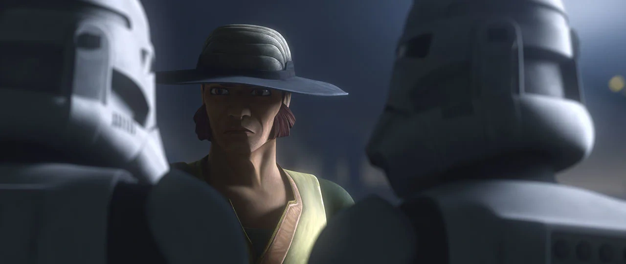 Cut Lawquane erwartet den Angriff der Kommandodroiden.