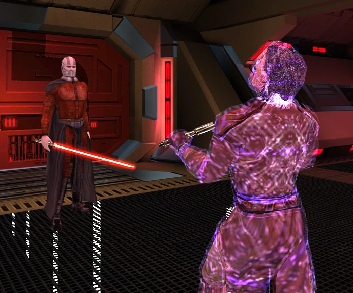 Doch Revan erwies sich als stärkerer Gegner, als Malak erwartet hatte. Aus diesem Grund erklärte der Dunkle Lord die Funktion der Leichen in Stasis, die um den Kampfschauplatz aufgestellt waren. Malak hatte die Leichen der gefallenen Jedi während des Angriffs auf die Jedi-Enklave von Dantooine eingesammelt und verhindert, dass diese vollständig in die Macht eingingen. Stattdessen wurden die Reste der Macht, die noch immer mit den Körpern verbunden war, von der Sternenschmiede korrumpiert und ihm selbst zugeführt, um ihn zu stärken. Allerdings hatte Malak nicht damit gerechnet, dass sein ehemaliger Meister seine Angriffe von ihm weglenken würde: Revan zerstörte zunächst die Stasisfelder, in denen die Körper am Leben gehalten wurden. Somit erlöste er seine gefallenen Kameraden von diesem Zustand und der Verderbtheit der Dunklen Seite und beraubte Malak gleichzeitig seiner nahezu unerschöpflichen Kraftquelle. Der anschließende Kampf verlangte den ehemaligen Freunden viel ab, beide setzten sowohl ihr Wissen um die Macht als auch ihre überragendes Können im Umgang mit dem Lichtschwert ein, um den jeweils anderen zu besiegen.