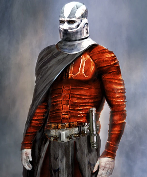 Durch seine Größe von gut zwei Metern und den muskulösen, durchtrainierten Körper wirkte Alek als Sith-Lord noch imposanter und einschüchternder. Seinen Kampfanzug hatte er inzwischen gegen eine eng anliegendere Version eingetauscht, die den Eindruck einer vollständigen Bandagierung seines Körpers hervorrief. Besonders seine Unterkieferverletzung und die Prothese trugen nochmals zu seiner furchterregenden Erscheinung bei und seine Grausamkeit und Kaltblütigkeit spiegelten sich auch in seinen dunklen eingesunkenen Augen und der metallisch klingenden Stimme des Vokabulators wider.[15]
