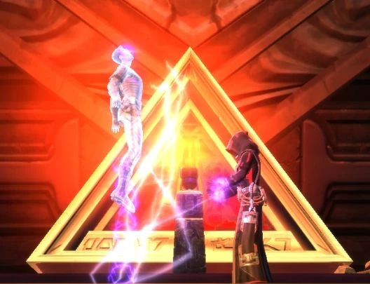 - ↑ 3,0 3,1 The Old Republic (Quest vom Sith-Inquisitor „Geist und Materie“ auf dem Planeten/Schiff Korriban)