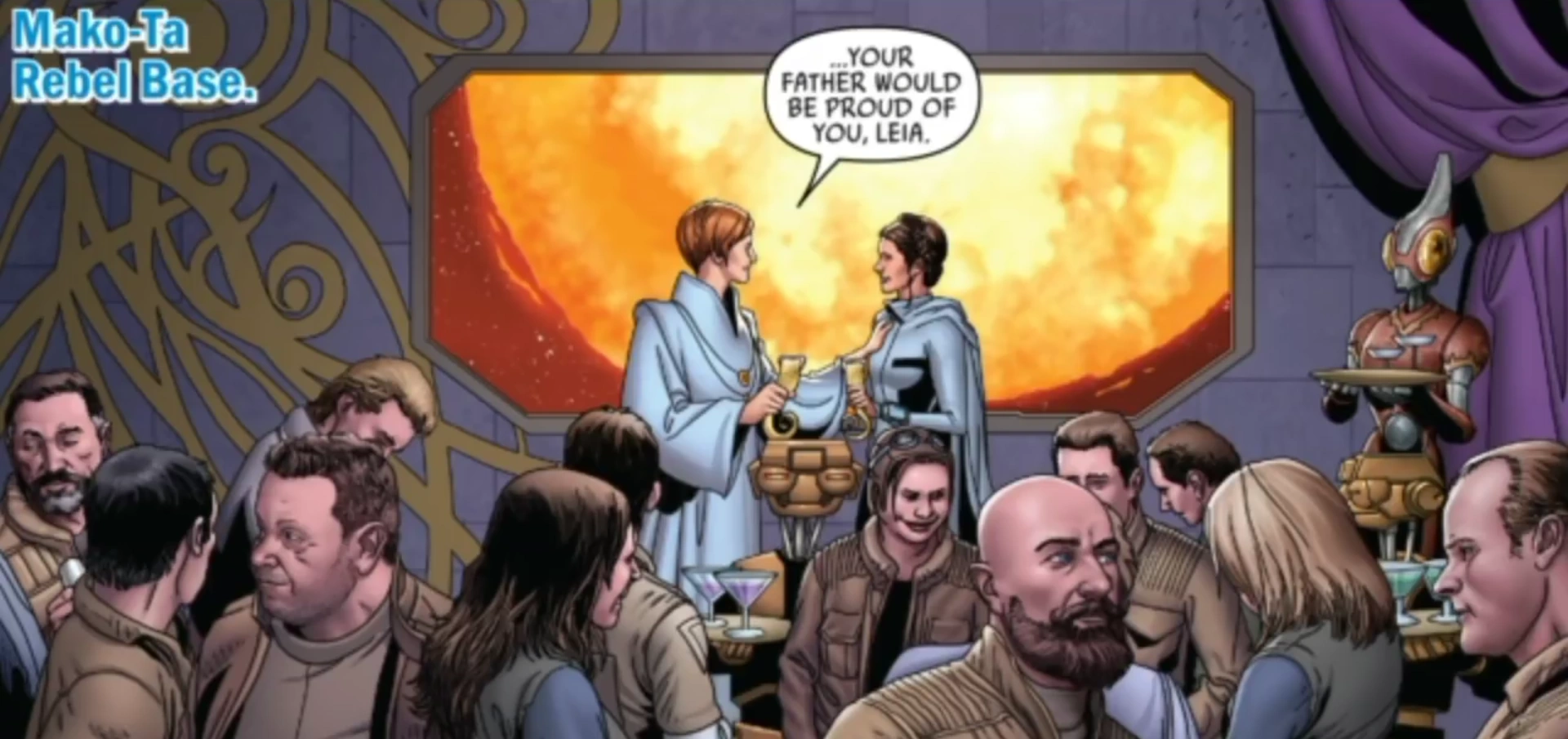 Einige Monate später, nachdem die Frachter von Mon Cala von der Allianz mit Hilfe von Modulen, die die Königin von Shu-Torun, Trios, an die Rebellen geliefert hatte, zu Kampfschiffen umgerüstet worden waren, sollte die Flotte aufbrechen, und sich für zukünftige Schläge vorbereiten. Viele hochrangige Rebellen und Unterstützer der Allianz fanden sich zu einer großen Feier auf der Mako-Ta-Basis ein, unter ihnen auch General Draven. Als die Rebellenflotte nach einer Flugshow in den Hyperraum springen sollte, war dies den Rebellen nicht möglich, denn die Module von Shu-Torun waren sabotiert worden. Trios, die sich beinahe unbemerkt von der Feier geschlichen hatte, war heimlich eine Doppelagentin für den Sith-Lord Darth Vader, und hatte die Module so sabotieren lassen, dass die Schiffe beinahe vollkommen kampfunfähig wurden. Lediglich die Schilde und die Lebenserhaltung waren noch einsatzfähig. Kurz darauf sprang die Todesschwadron, Vaders persönliche Flotte aus dem Hyperraum, und begann die Mon-Calamari-Sternkreuzer anzugreifen.[3]