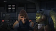 Ezra und Hera bereiten Chopper auf den Einsatz vor und kommen unter anderen auf Heras Vater zu sprechen. Ihr Kontakt zu ihren Vater ist abgebrochen. Nach den Klonkriegen wurde die Republik zum Imperium und besetzte genauso den Planeten, wie es auch einst die Separatisten taten.[6] Aus diesen Grund kämpft er nun gegen das Imperium, und als Heras Mutter getötet wurde, war sein einziges Ziel, das Imperium von Ryloth zu vertreiben. Während des Gespräches kommt Cham in den Raum, woraufhin Ezra geht. Daraufhin entfacht ein Streit zwischen Vater und Tochter. Cham wirft Hera vor, die falschen Dinge im Fokus zu haben, dass sie ihre Zeit unwesentlichen Dingen widme und die sie der Rebellion, den "Fremden", nicht vertrauen dürfe, da er damals der Republik vertraut habe und von ihr verraten worden sei. Hera versucht, ihrem Vater zu erklären, dass die Rebellen jeden von der Tyrannei des Imperiums befreien will. Cham entgegnet darauf, dass ihn nur Ryloth und nicht jeder interessiere, und bricht das Gespräch ab.