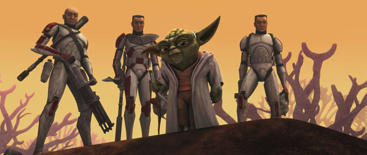 Zur gleichen Zeit versucht Yoda den Klonen eine Lexion zu erteilen, indem er ihnen erzählt, dass sie zahlenmäßig zwar unterlegen sind, ihr Verstand aber größer sei. Die Klonkrieger verstehen jedoch nicht, was der General damit meint.