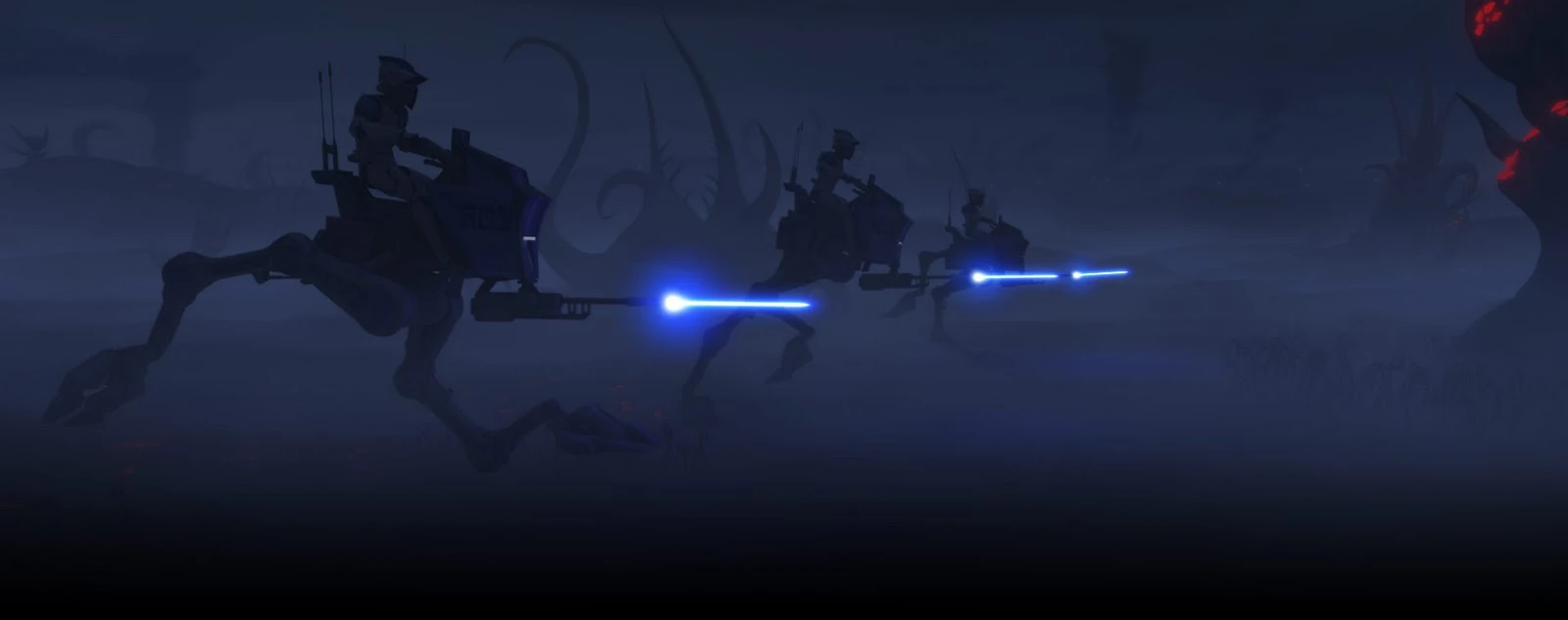 Sodann erscheint ein Jedi-Meister namens Pong Krell, der Anakin ablösen soll, weil dieser von Kanzler Palpatine zurück nach Coruscant gerufen wird. Anakin macht sich unverzüglich auf den Weg. Sobald Krell das Kommando innehat, lässt er die Truppen sogleich losmarschieren. Während des Aufbruchs kommen zwei für die Klone unbekannte Tiere vorbei. Da die Klone diese für Feinde halten, greifen sie die Tiere an, die sich wehren. Krell rettet einen Klon, der von den Tieren bedroht wird.
