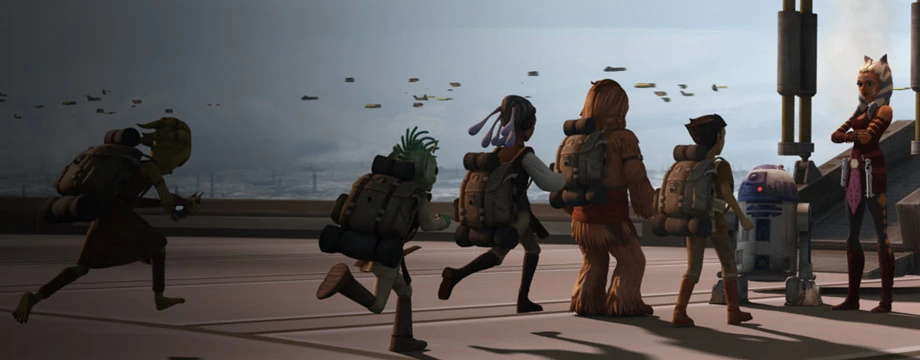 - Am Anfang sieht man wie Jahre vor den Klonkriegen die kleine Ahsoka von Plo Koon entdeckt wird.