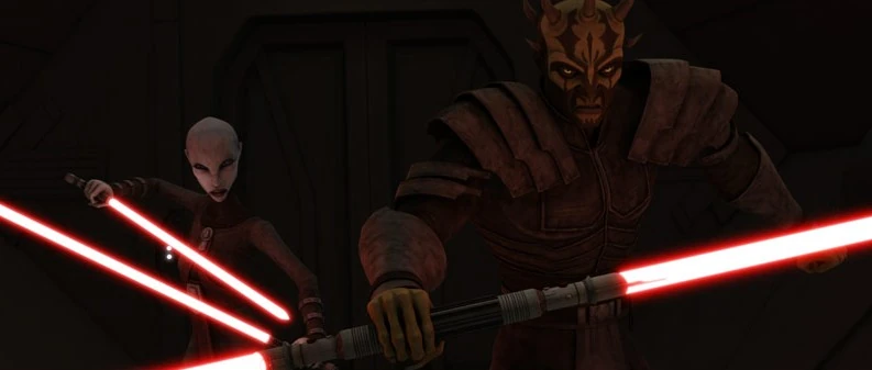Zur Zeit der Klonkriege unterwies der Sith-Lord Darth Tyranus, meist Count Dooku genannt, Asajj Ventress und Savage Opress als Schüler der Dunklen Seite. Diese kämpften auf der Seite der Konföderation unabhängiger Systeme gegen die Jedi und die Galaktische Republik. Aufgrund der Regel der Zwei von Darth Bane konnten beide eigentlich nicht zu Sith ernannt werden.[2] Obwohl beiden dieser Regel entsprechend nie der Titel Darth verliehen wurde, werden sie meist zu den Sith gezählt.[3] Folglich lassen sich beide nicht pauschal entweder den Dunklen Jedi oder den Sith zuordnen.