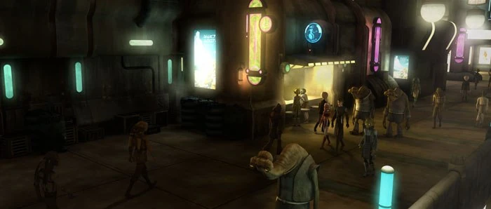 In den unteren Ebenen angekommen, begeben sich die beiden Jedi zu einem Imbiss, wo sie von einem Quarren angesprochen werden. Als sie ihn fragen, wo man ein Lichtschwert bekommen könnte, bittet er sie zu folgen und begibt sich in einen Hinterhof. Doch als Ahsoka ihn nach Bannamu fragt, erkennt der Quarren sie als Jedi und erklärt sich bereit, ihnen zu helfen. So erfahren sie von seinem Partner, einem Twi'lek namens Jan Dez, dass Bannamu sich im Spider Arms-Hotel aufhält, worauhin sie sich dorthin begeben. Als sie das Hotel betreten, werden sie von einem Rodianer angesprochen, der ihnen Hilfe anbietet. Doch mit Hilfe der Macht beeinflusst Tera Sinube den Hotelier und geht mit Ahsoka weiter. Als Ahsoka ungeduldig wird, bittet Sinube sie, ruhiger zu werden und führt an, dass sie, wäre sie ruhiger, die Unruhe von Bannamu spüren und ihn so finden könnte. Im nächsten Moment bleibt er vor einer Tür stehen und weist sie darauf hin, dass Bannamu sich in diesem Zimmer befinden würde. Sofort reist Ahsoka mit Hilfe der Macht die Tür auf und überrascht den Patrolianer, der auf ihre Fragen zunächst ausweichend antwortet. Als sie mit der Macht durch den Raum wirft, wird Bannamu jedoch kooperativer und offenbart ihr, dass er das Lichtschwert an einen Killer, Nack Movers, verkauft hat. Nachdem Ahsoka auch erfahren hat, wo sich Movers normalerweise aufhält, begibt sie sich nach Happyland, wo sie das Gebäude, in dem Movers mit seiner Freundin wohnt, erreichen.
