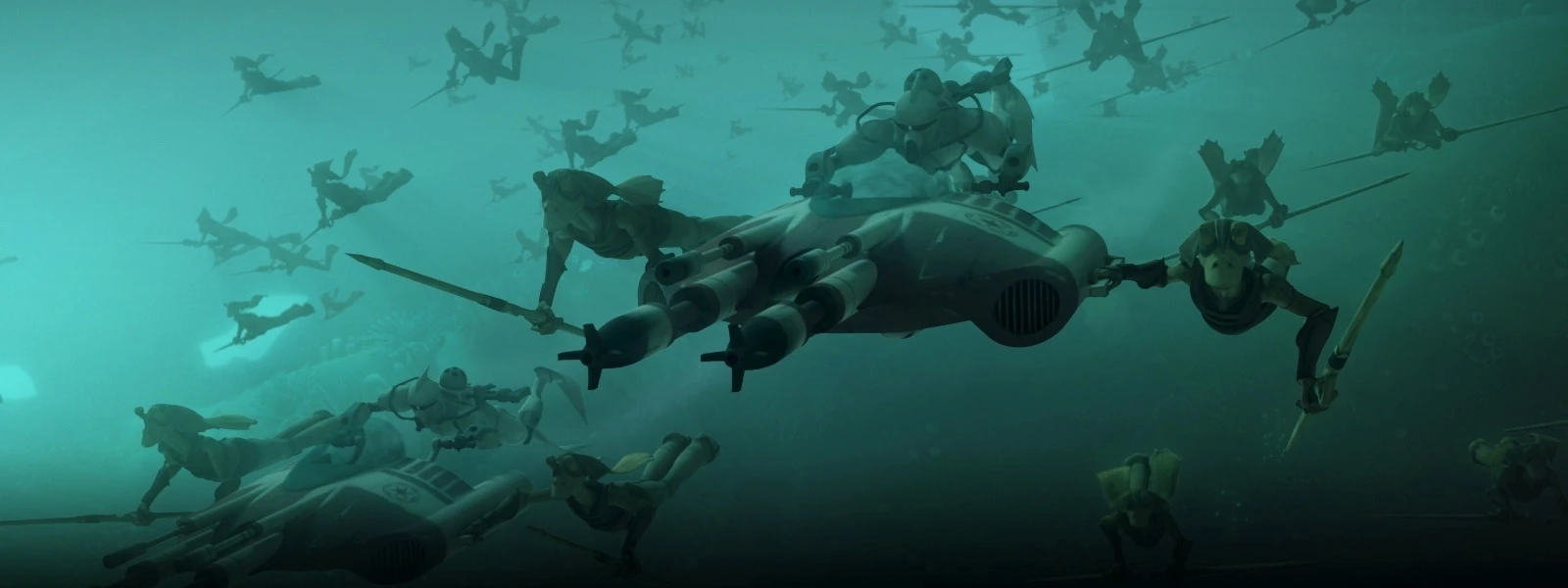 Im selben Augenblick trifft die Armee der Gungans ein, um Lee-Char und seinem Volk dabei zu helfen, sich gegen die Separatisten zu behaupten. Da sich die Jedi dazu entschlossen haben sich aufzuteilen, entscheidet sich Tamson dafür, diejenige Gruppe anzugreifen, die die Gefangenen zu befreien versucht, denn er glaubt, dass Lee-Char zu dieser Gruppe gehöre. Mit Hilfe von Hydroid-Medusen und Angriffsschiffen der Dreizack-Klasse, die einen Strudel erzeugen, versucht Tamson, seine Gegner gefangen zu nehmen. In dem Chaos, dass währenddessen entstanden ist, versucht Tamson, des Mon-Calamari-Prinzen habhaft zu werden, doch er wird von Ahsoka und Fisto daran gehindert. Im selben Augenblick greift ein zweites Dreizack-Klasse-Angriffsschiff an. Anakin und Ackbar können es zwar zerstören, werden dann aber von den übrigen Droiden gefangen genommen. Auch Kit Fisto gerät in Gefangenschaft, und nur Lee-Char und Ahsoka können entkommen. In ihrem Versteck entschließt sich Lee-Char dazu, alles zu tun, um sein Volk zu retten.