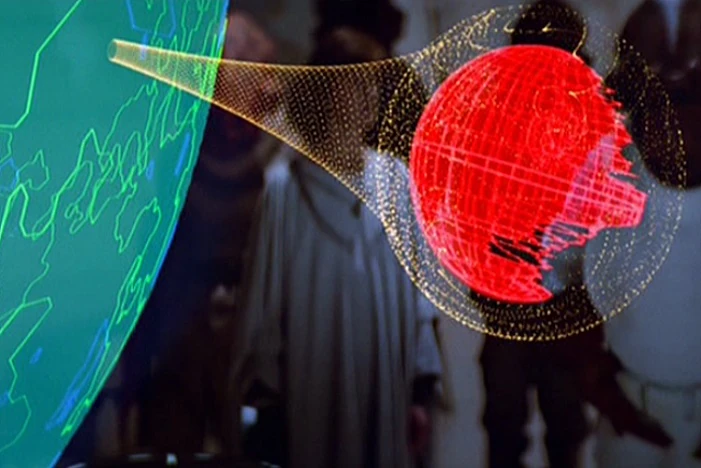 Ein Hologramm des Zweiten Todessterns über Endor.