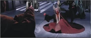 Mace Windu sowie die Jedi-Meister Saesee Tiin, Kit Fisto und Agen Kolar wollen den Kanzler verhaften. Als sie in sein Büro eintreten, zieht Palpatine blitzschnell ein Lichtschwert und erschlägt die Eskorte von Mace. Diesem gelingt es in einem furiosen Duell, den Kanzler zu entwaffnen, und er drängt ihn an das Fenstersims. In diesem Moment betritt auch Anakin das Büro des Kanzlers und sieht, wie Mace Windu im Begriff ist, Palpatine zu töten.