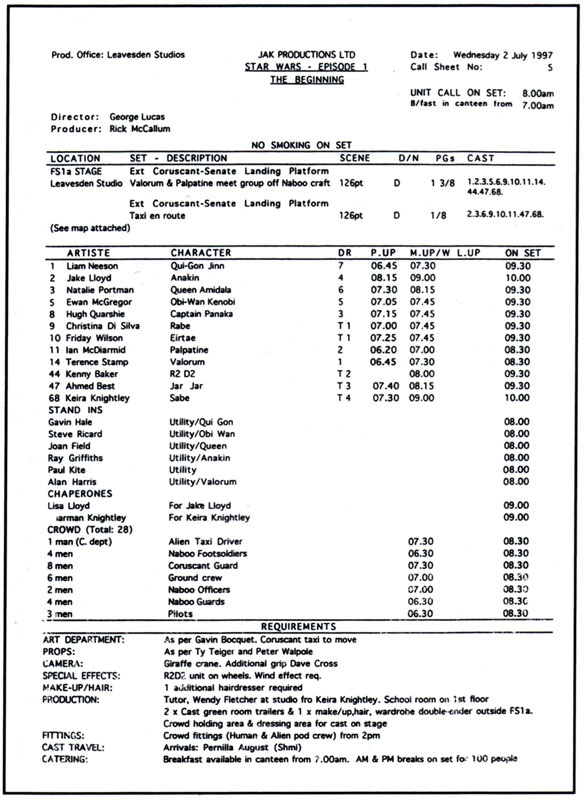 Um den gewaltigen Aufwand, der sich schon in der Planungsphase abzeichnete, koordinieren zu können, erstellte man detaillierte Drehpläne und verteilte das Tagesgeschäft auf ein fähiges Team aus Regieassistenten, die für von der Einteilung am Set bis hin zur Versorgung der Darsteller alle Aufgaben überwachten und arrangierten. In der Praxis bedeutete dies, von Sonnenauf- bis Sonnenuntergang in Aktion zu sein, und von der Anreise der Schauspieler über die Vorgänge im Studio und schließlich den Schluss des Drehtages alles im Blick zu behalten und dem Regisseur somit alles vom Hals zu halten, was nicht die spätere Erscheinung des Films betraf.