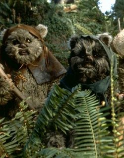 - Das Aussehen der Ewoks wurde von Ralph McQuarrie und Joe Johnston entworfen. Eine frühere Idee, die Ewoks Nagetieren ähneln zu lassen, wurde verworfen da man Nagetiere als zu schwach erachtete um gegen das Imperium zu kämpfen.[2]