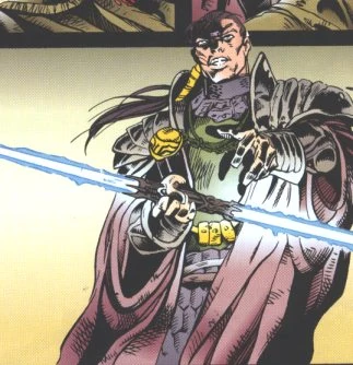 Exar Kun und das von ihm erfundene Doppelklingen-Lichtschwert.