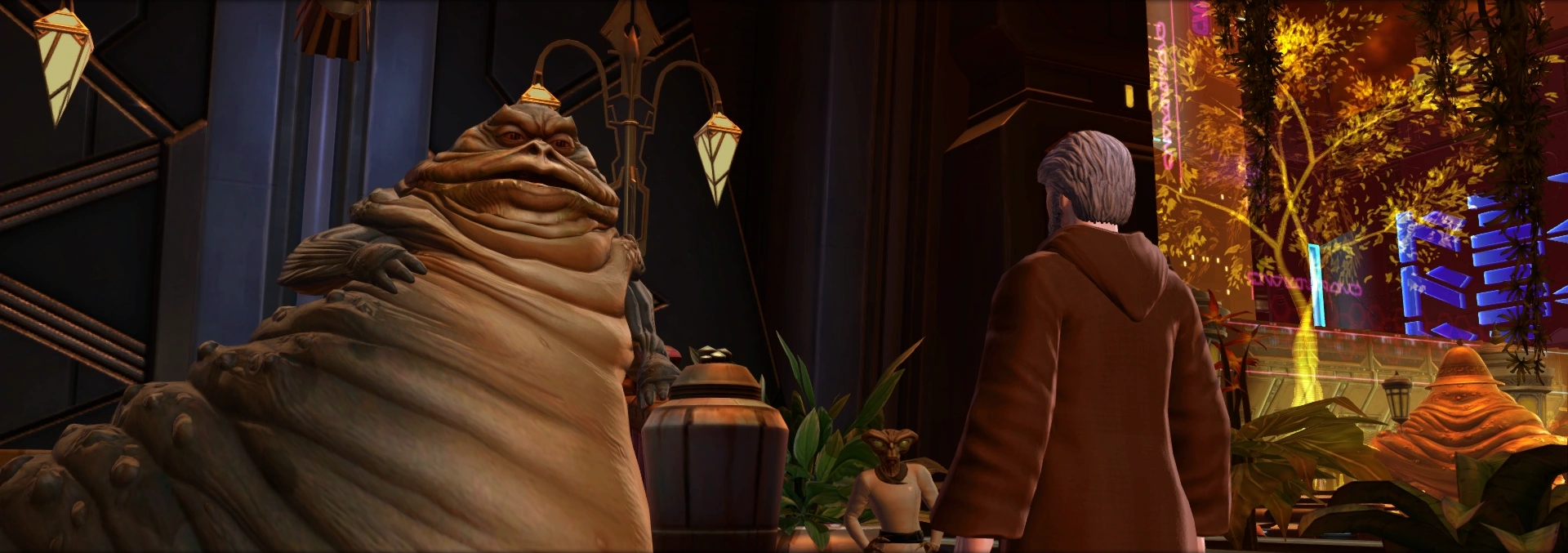 - ↑ The Old Republic – Onslaught (Quest: „Sonderwunsch: Nar Shaddaa“ der Fraktion Ewige Allianz auf dem Planeten/Schiff Nar Shaddaa)