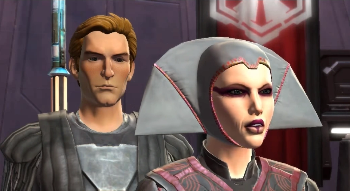 - ↑ 1,0 1,1 1,2 1,3 1,4 1,5 The Old Republic (Quest vom Sith-Krieger „Spur der Verwüstung“ auf dem Planeten/Schiff Dromund Kaas)