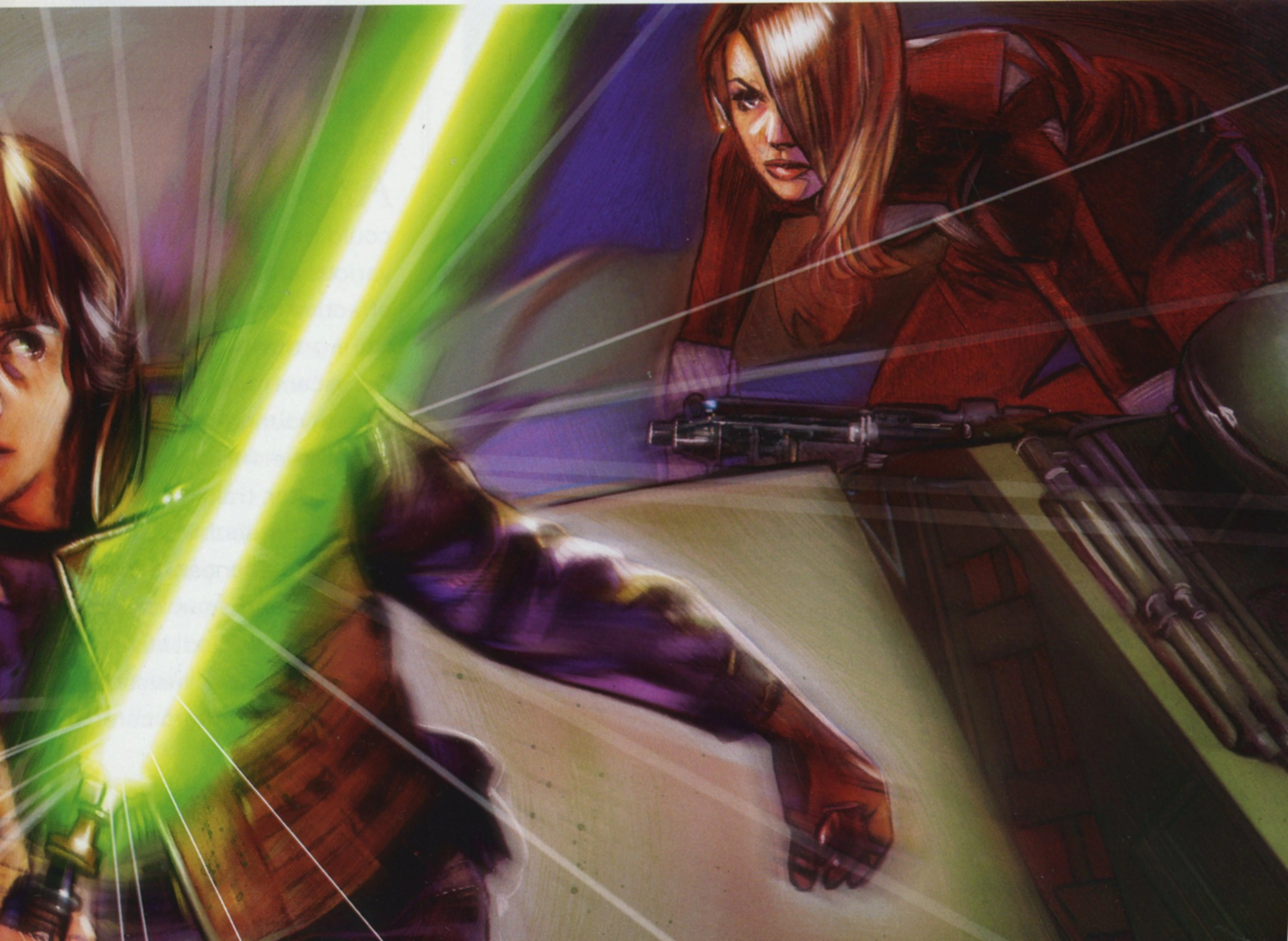 - ↑ 62,0 62,1 Shadows of the Empire (Sammelkarten) – (Karte: Guri Goes Toe-to-Toe with Luke)