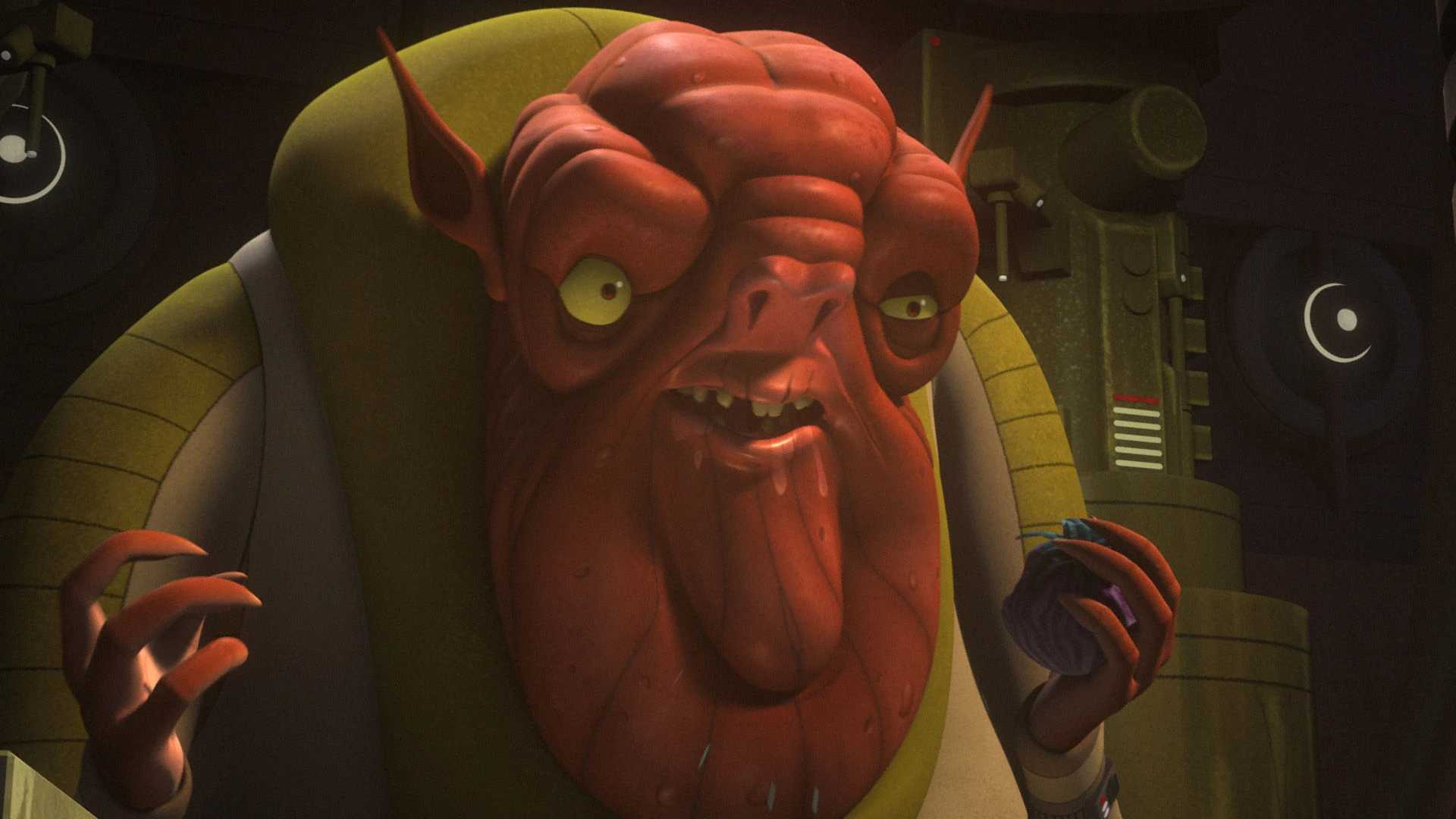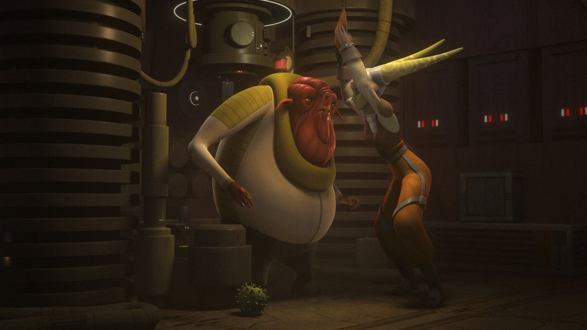 Im Frachtraum begrüßte Lando Azmorigan, der sich von einem Protokolldroiden mit Früchten bedienen lies. Doch als der Verbrecher-Lord nach der Ware fragte, stieß Calrissian Hera nach vorne und bot sie vor den Augen des entsetzten Kanan an. Die Twi’lek hielt sich jedoch an die ihr gegebenen Anweisungen und spielte eine Sklavin. Lando und der schockierte, aber zur Untätigkeit verdammte Kanan verließen den Raumkreuzer mit ihrer Fracht. Die Ghost dockte daraufhin ab und wartete in einiger Entfernung.