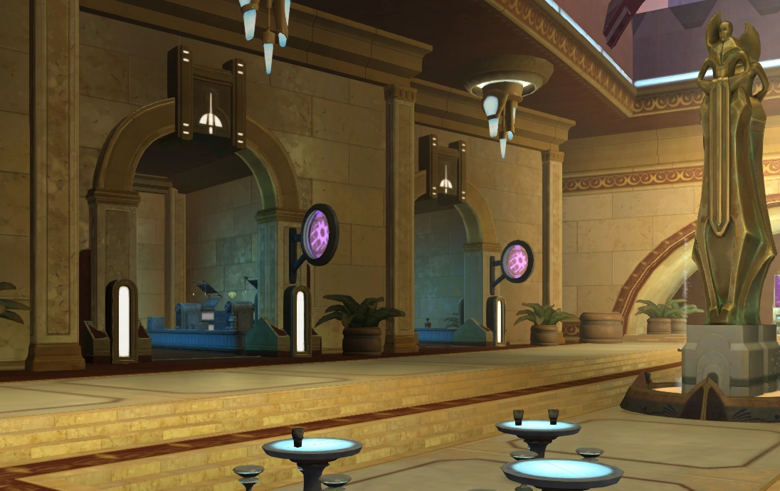 Über zwei parallele Eingänge an der Auffahrt der Kerngründer vor dem Gebäude des Galaktischen Senats konnte der Bereich betreten werden.