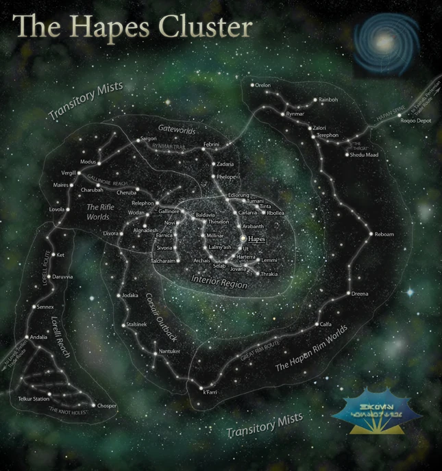 Der Hapes-Sternhaufen ist ein Cluster im Inneren Rand, welcher das Hapes-Konsortium beheimatet.