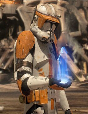 Cody empfängt auf einem Holoprojektor die Order 66.