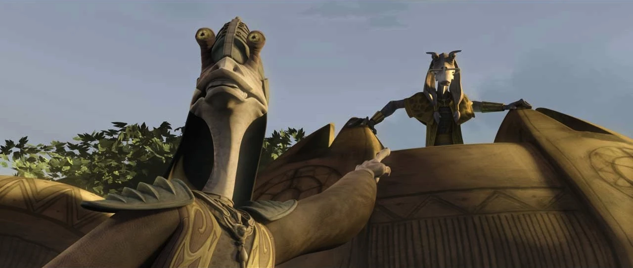 Als die Separatisten begannen, den Planeten Ryloth zu erobern, kämpfte eine Klonkriegereinheit unter Ima-Gun Di gemeinsam mit einer Freiheitskämpfergruppe aus den einheimischen Twi'leks, die von Cham Syndulla geführt wurde, gegen die feindliche Droidenarmee. Da diese jedoch immer mehr Verstärkung erhielt und die republikanische Versorgungsflotte im Orbit von Ryloth zerstört wurde, gerieten Dis Männer immer mehr in Bedrängnis und mussten schwere Verluste erleiden. Da der Planet zu weit entfernt war, um erfolgreich Versorgungsschiffe entsenden zu können, musste die Republik eine Welt als Ausgangspunkt nutzten, von der die Schiffe starten konnten. Als solche bot sich Toydaria an, jedoch hatten sich deren Bewohner zur Neutralität entschlossen, weshalb sie ein derartiges Vorhaben nicht billigen würden. Daher sollte Jar Jar nach Toydaria reisen, um mit dessen König Katuunko zu verhandeln, ob er nicht über die Neutralität nachdenken wollte. Da der Jedi-Rat Jar Jar aber, durchaus gerechtfertigt, für zu tollpatschig hielt, um eine so wichtige Verhandlung durchzuführen, bat er Senator Bail Organa, um den Gungan zu unterstützen. Dieser stimmte zu, jedoch wurde die Hologrammnachricht von den Separatisten abgefangen und Count Dooku übermittelt. Der Sith-Lord beauftragte Lott Dod, den Senator der Handelsföderation im Galaktischen Senat und Verbündeter der Konföderation, sich ebenfalls nach Toydaria zu begeben, um Jar Jars und Organas Mission zu verhindern.[10]