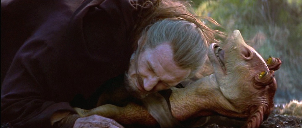 Jar Jar kämpgt mit einem Frangawl-Kultinisten