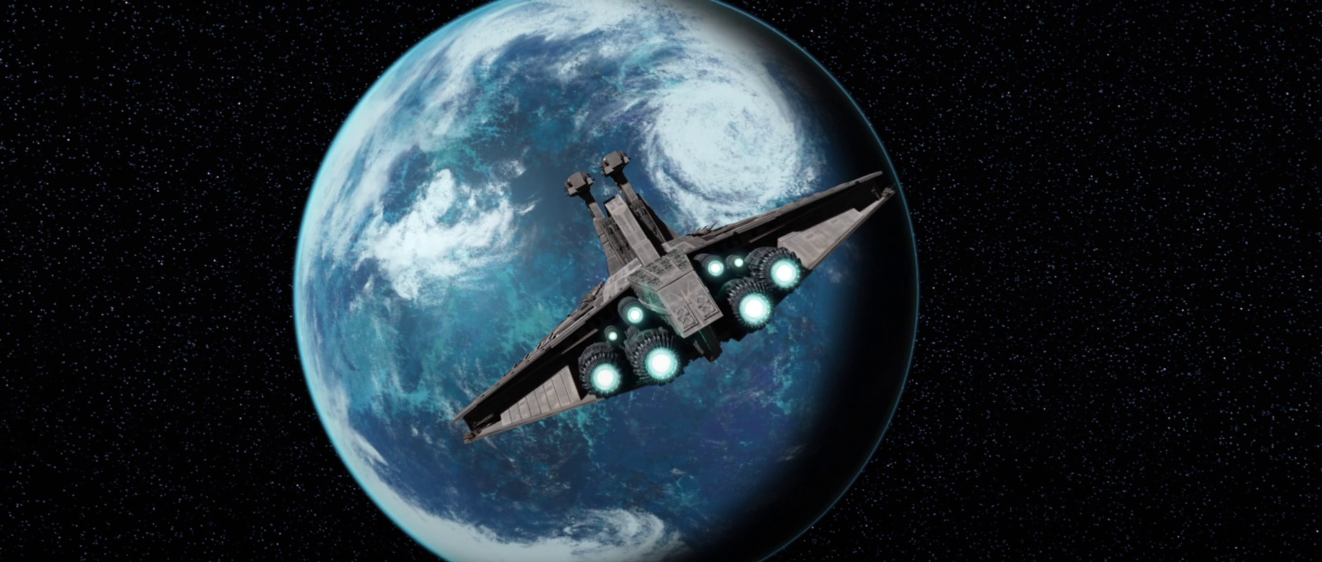„Senatorens, sehr abgeordnete Geehrte... Und als Antwort auf diese direkte Bedrohung der Republik michse vorschlagen, dass der Senat sofort mit Notstandsmaßnahmen bevollmächtigt, den Obersten Kanzeler.“