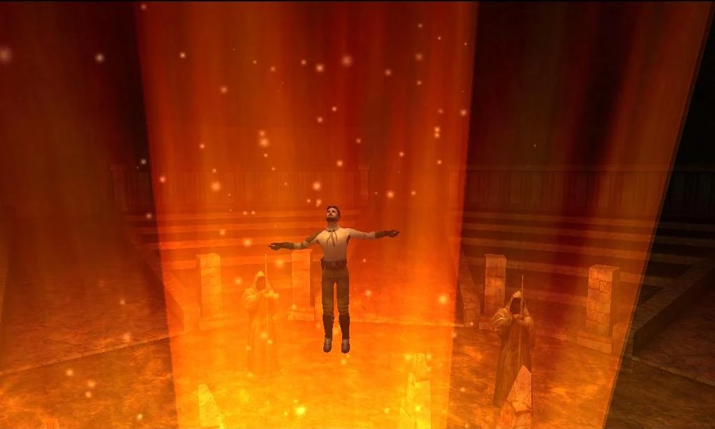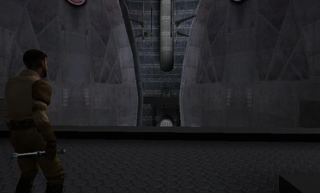 Inmitten der Flucht von der Doomgiver versagt die künstliche Gravitation und Katarn muss mit seinem Lichtschwert in der Schwerelosigkeit die gegnerischen Blasterschüsse abwehren.