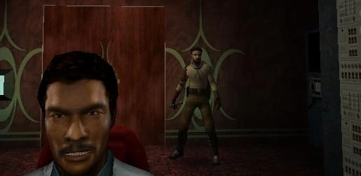 Dort stößt er durch Zufall auf einen eingesperrten Bekannten – Lando Calrissian. Dieser erklärt Kyle, dass er Reelo „überzeugen“ wollte seine dubiosen Aktivitäten auf Bespin einzustellen und er deswegen als Gefangener endete. Die beiden Helden der Rebellion schließen sich zusammen, um Reelo zur Strecke zu bringen. Während Kyle versucht, Lando aus der Zelle zu befreien, trifft er das erste Mal auf den fettleibigen Rodianer Reelo, der von der Spitze eines arenagleichen Areals seine automatischen Blaster aktiviert, um Kyle zu töten und als dies misslang, seine Handlanger anweist, den Jedi zu eliminieren. Beiden Bedrohungen kann sich Katarn erfolgreich erwehren, um den Schalter zu finden, der Landos Zelle öffnet.