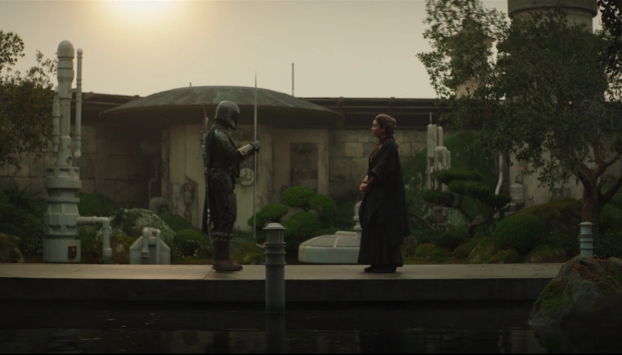 Din Djarin erhält Elsbeths Beskar-Lanze von Tano.