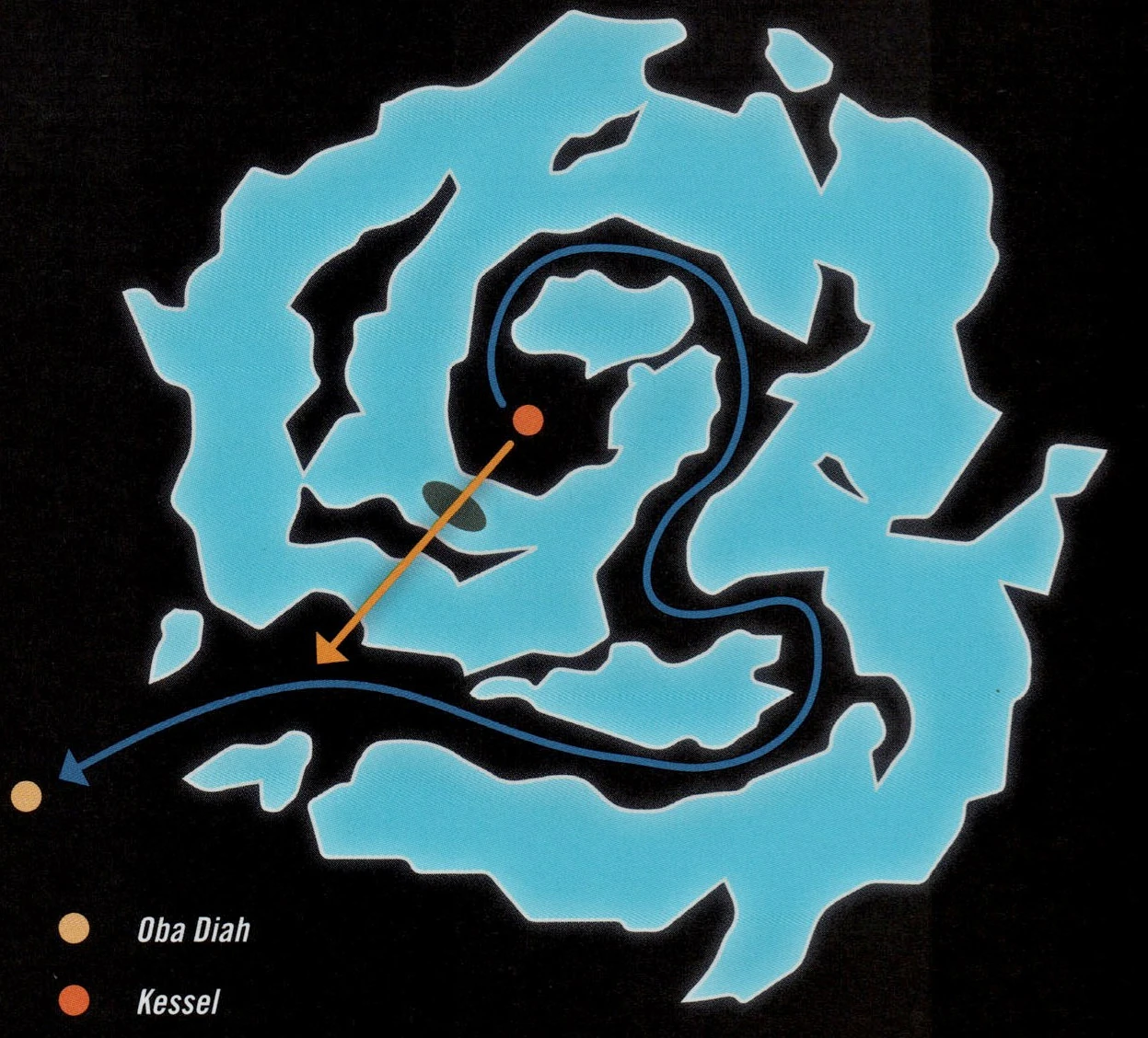Die traditionelle Strecke, die über Umwege durch das Gebiet führte, war 20 Parsec lang und endete bei Oba Diah. Durch den Mahlstrom und am Schlund vorbei konnte man die kürzestmögliche Strecke jedoch mit etwa 12 Parsecs bewältigen. Wagemutige Piloten nutzten Lücken im Mahlstrom, um kurze Teile der Passage abzukürzen. Han Solo gelang es jedoch mithilfe von L3-37s Navigationsdatenbank, ein wenig Hypertreibstoff und einer Rettungskapsel für das nahe des Schlunds lauernde Exemplar der Summa-Verminoth, die kurze Strecke zu bewältigen, auch wenn sein Schiff, der Millennium Falke, darunter litt. Han prahlte mit diesem Rekord auch noch Jahrzehnte danach.