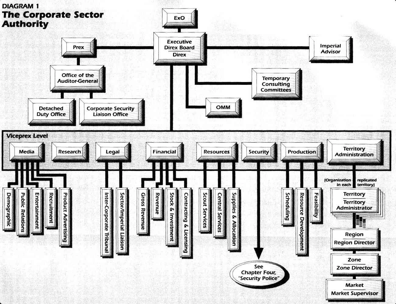 Neben ihrer grausamen Vorgehensweise ist die Sektorverwaltung in der Galaxis als Hersteller und Anbieter von zahlreichen Sicherheitsprodukten bekannt. Gerade ihre Molekularpanzerung oder die Antivibrofelder stellten große Fortschritte im Bereich der Panzerung von Bunkern oder Tresoren dar.