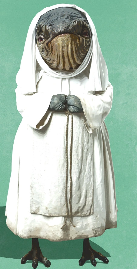 Die Lanais[8] sind eine intelligente, avianoide Spezies vom einsamen Meeresplaneten Ahch-To in den Unbekannten Regionen der Galaxis. Sie leben auf der Tempelinsel der abgeschiedenen Welt und sind aufgrund ihrer Abstammung entfernt mit den unintelligenten Porgs verwandt. Die Hüterinnen — bei welchen es sich um die Frauen der Spezies handelt — haben es sich zur spirituellen Aufgabe gemacht, die zerfallenen Gebäude der Jedi instand zuhalten.