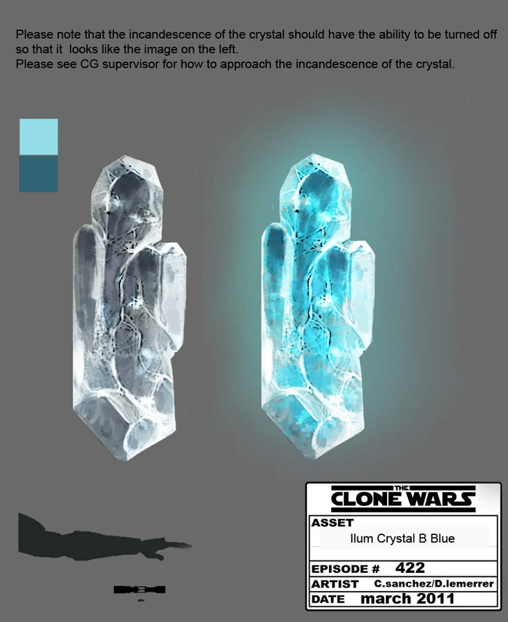 Jeder Kristall, der noch nicht von einem Machtbenutzer auserwählt worden ist, leuchtet nur matt und scheint farblos. Erst wenn er "gefunden" wird, beginnt er blau zu leuchten.