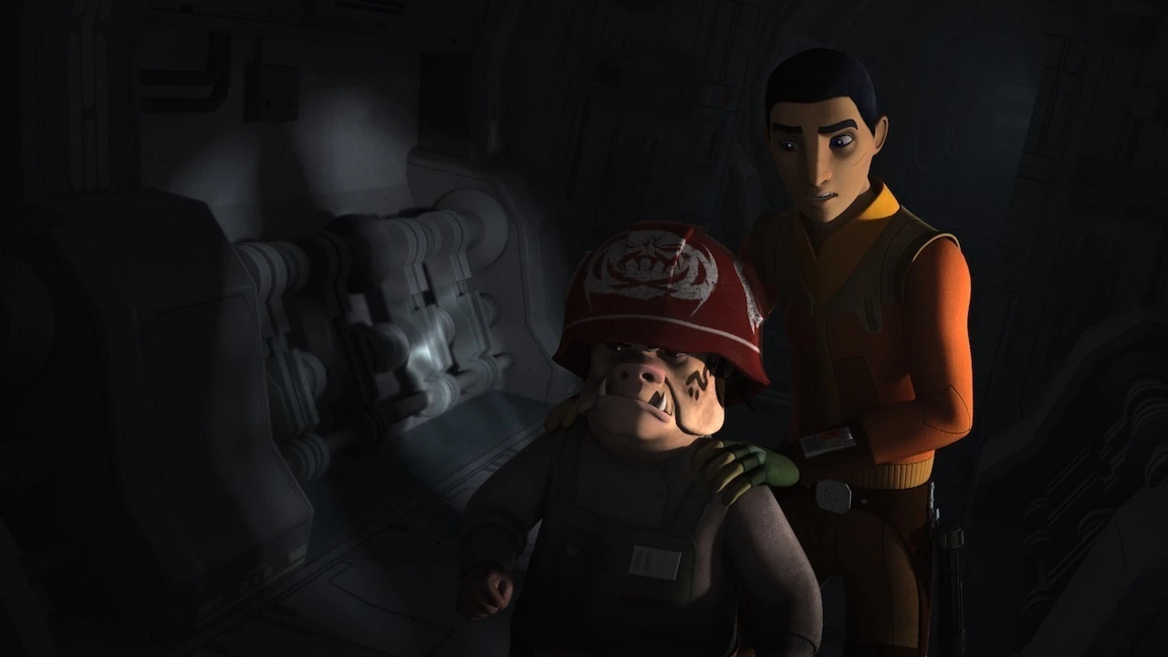 | Um dem Druck der Verantwortung als Rebell und Jedi zu entfliehen, macht sich Ezra mit Chopper zu einer Rettungsmission auf, nachdem sie ein Notsignal erhalten haben. Überrascht stellt er fest, dass das Schiff in Not von Hondo Ohnaka geführt wird. Dieser schlägt Ezra vor sich ihm anzuschließen.[23] | ||||||