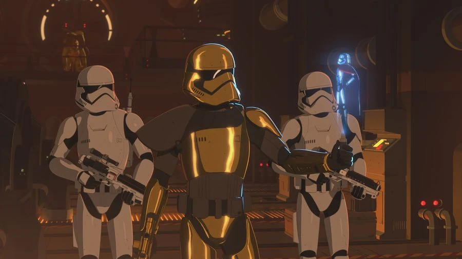 | Die Erste Ordnung kommt aus mysteriösen Gründen auf die Plattform, und Kaz und BB-8 sind entschlossen, sich in den Turm zu schleichen, um herauszufinden, was sie wollen. | ||||||