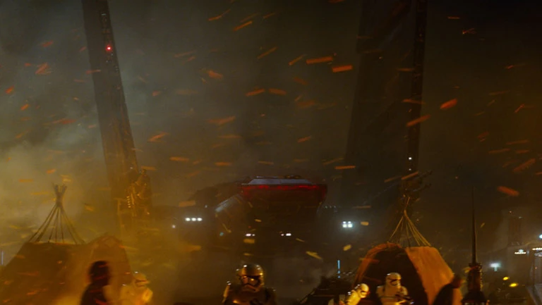 - Das Scharmützel von Jakku war eine der ersten Szenen in Episode VII. Es wurde zuvor auch mit einigen kleinen Ausschnitten in manchen Trailern zum Film gezeigt.