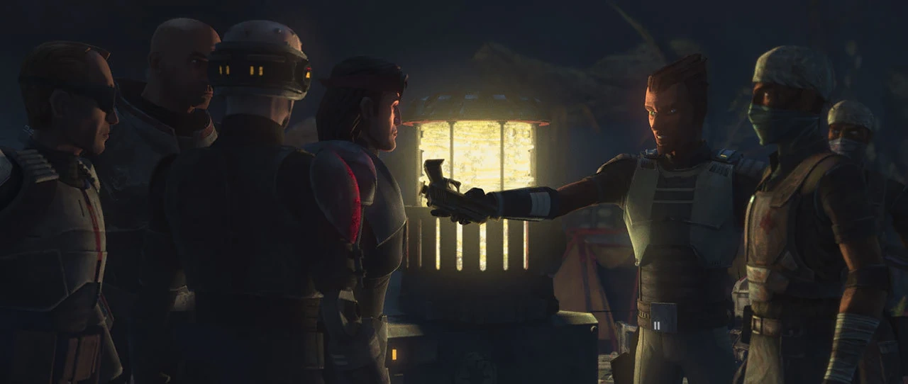 Obwohl Crosshair bereits eine ältere Frau mit seinem Scharfschützengewehr anvisierte und auf den Schießbefehl wartete, verweigerte Hunter die Feuerfreigabe. Wrecker zeigte sich enttäuscht darüber, dass er scheinbar keine Kampfdroiden in die Luft jagen könnte. Während sich Tech und Wrecker unentschlossen über ihr weiteres Vorgehen zeigten, drängte Crosshair weiterhin darauf, dass sie die Mission beenden müssten. Genau in diesem Moment wurde die experimentelle Kloneinheit 99 von Partisanen des Widerstandskämpfers Saw Gerrera umstellt. Die Klone legten ihre Waffen nieder und wurden ins Lager gebracht, wo es zu einer weiteren Irritation kam. Die Gruppe erkannte die Freiheitskämpfer als republikfreundlich, da sie einst von dem Jedi-Ritter Anakin Skywalker und von Captain Rex ausgebildet wurden, weswegen Tech die Frage aufwarf, warum Tarkin sie auf ihre eigenen Leute ansetzte. Gerrera gab sich der Gruppe zu erkennen und erklärte, dass sie sich dem Imperium nicht unterordnen wollten.[2]
