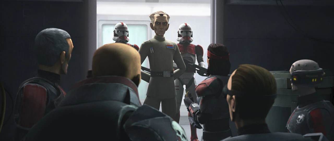 Im unaufgeräumten Quartier der Kloneinheit 99 lobte Tarkin die Klone für ihre Darbietung und stellte die Gemeinsamkeiten zwischen dem unorthodoxen Vorgehen der Truppe und des Imperiums her. Hunter ahnte bereits, dass der Imperiale Offizier eine Mission für parat hatte. Tarkin verwies auf Aufständische im Onderon-Sektor, die er als „Separatisten“ bezeichnete und deren Eliminierung er einforderte. Im Gegenzug für ihren Einsatz versprach Tarkin der Gruppe eine Berücksichtigung bei seiner anstehenden Neustrukturierung der imperialen Armee. Kloneinheit 99 begab sich daraufhin in die Landebucht 1-1 und bereitete sich auf den Abflug vor. Tech fragte Echo, ob er bereits mehr über die Aufständischen auf Onderon in Erfahrung bringen konnte, allerdings entgegnete Echo, dass die Akte des Imperiums unter Verschluss seien. Der Hacker der experimentellen Kloneinheit 99 zeigte sich jedoch zuversichtlich, dass er mit ein wenig Zeit auch an diese Geheimdaten gelangen könnte. Wrecker selbst zeigte sich positiv begeistert über die neue Waffenkammer und zeigte sich genauso wie Crosshair bereits optimistisch mit Blick auf die anstehende Mission.[2]