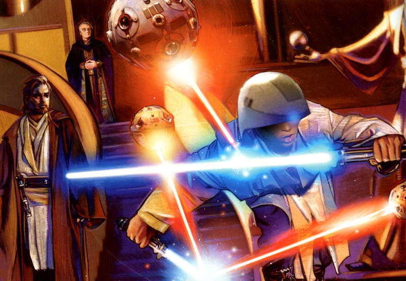 Ein Jahr vor der Schlacht von Naboo wurde der Jedi-Orden in einen Kampf mit den kriegerischen Yinchorri verwickelt, die von Sith-Lord Darth Sidious gegen den Orden aufgehetzt worden waren. Zusammen mit einem Einsatzteam, dem außer Obi-Wan und Qui-Gon unter anderem auch die Jedi Micah Giiett, Tsui Choi, Mace Windu und Adi Gallia angehörten. Nach einigen heftigen Auseinandersetzungen im Heimatsystem der Saurierspezies konnte die Bedrohung jedoch besiegt werden.[89]